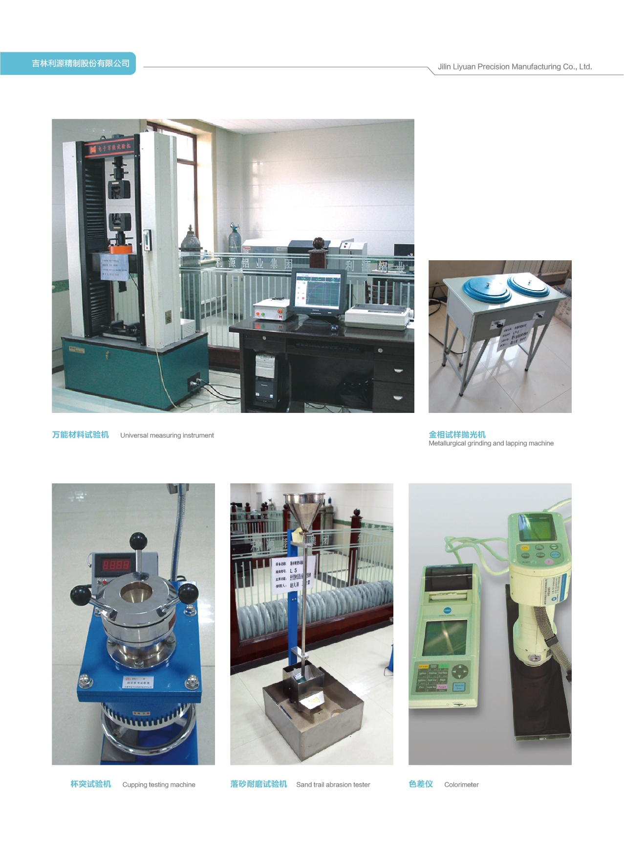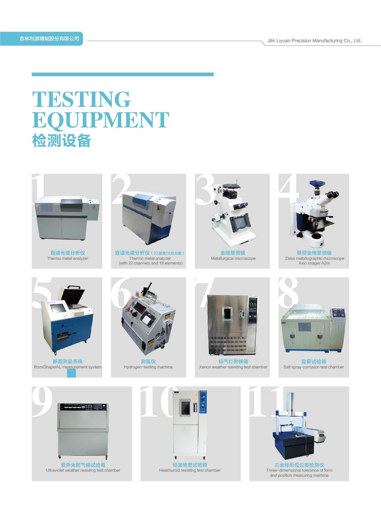 截止到目前,我公司總計(jì)擁有檢驗(yàn)設(shè)備近百套,總投入3000萬元左右,檢驗(yàn)內(nèi)容覆蓋了化學(xué)成分分析、幾何尺寸檢驗(yàn)、各種表面質(zhì)量檢驗(yàn)、力學(xué)性能檢驗(yàn)、環(huán)境模擬檢驗(yàn)、各種化學(xué)藥品和槽液的檢測。并且被認(rèn)定為省級檢驗(yàn)中心。
