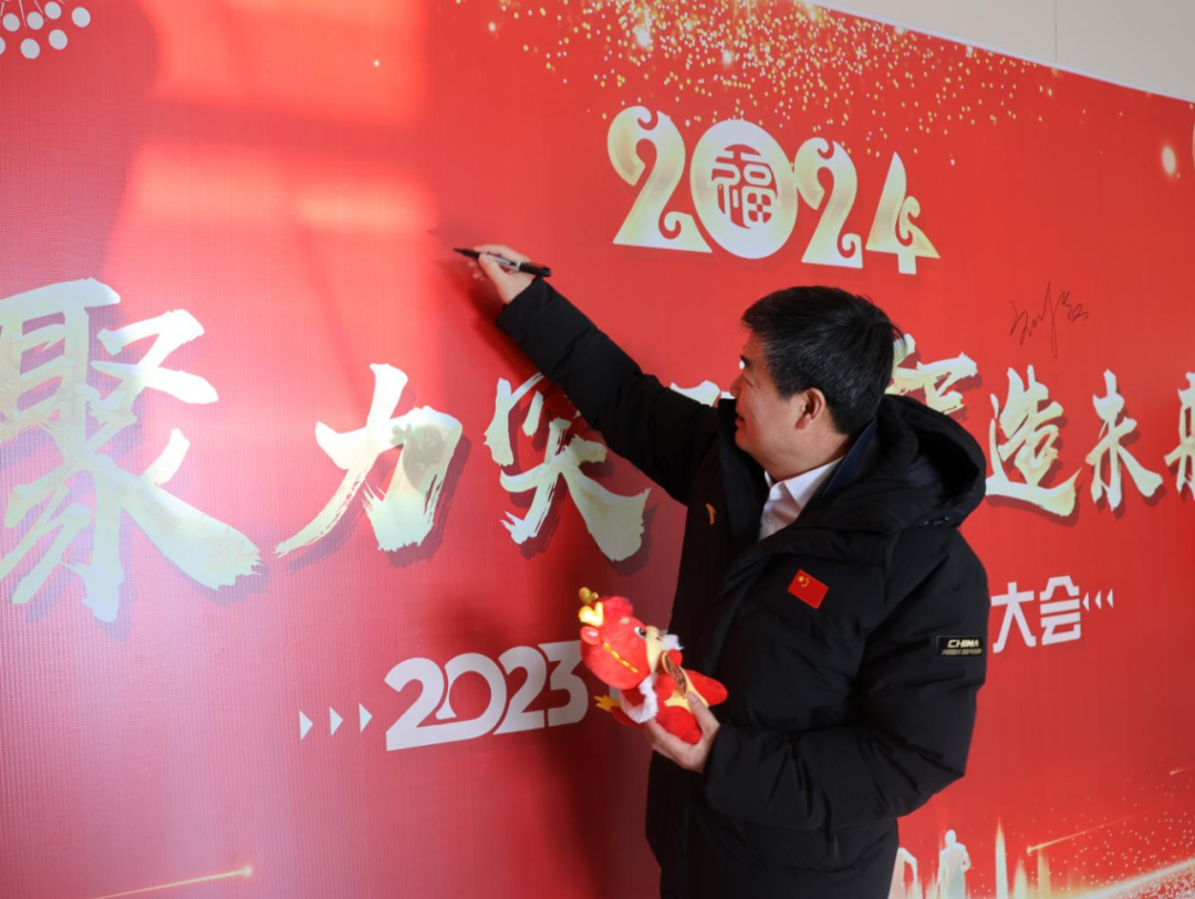 參會(huì)人員準(zhǔn)時(shí)到達(dá)會(huì)場(chǎng),在簽名墻簽名留影。2023年,我們爬坡過(guò)坎,負(fù)重前行,增智強(qiáng)基,越戰(zhàn)越勇;2024年,我們目標(biāo)堅(jiān)定,蓄勢(shì)待發(fā),行耕不輟,使命必達(dá)!